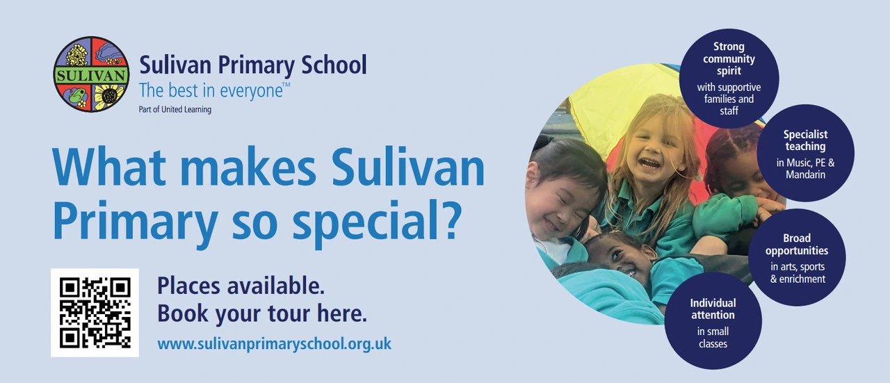 Welcome to Sulivan Primary School, a vibrant, inclusive, and small-form-entry school for children aged 3–11, located in the heart of Parson’s Green, just moments from the beautiful Hurlingham Park in the London Borough of Hammersmith & Fulham.